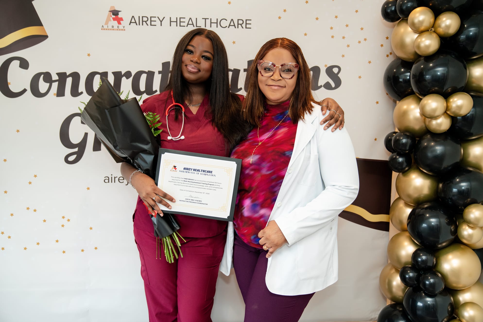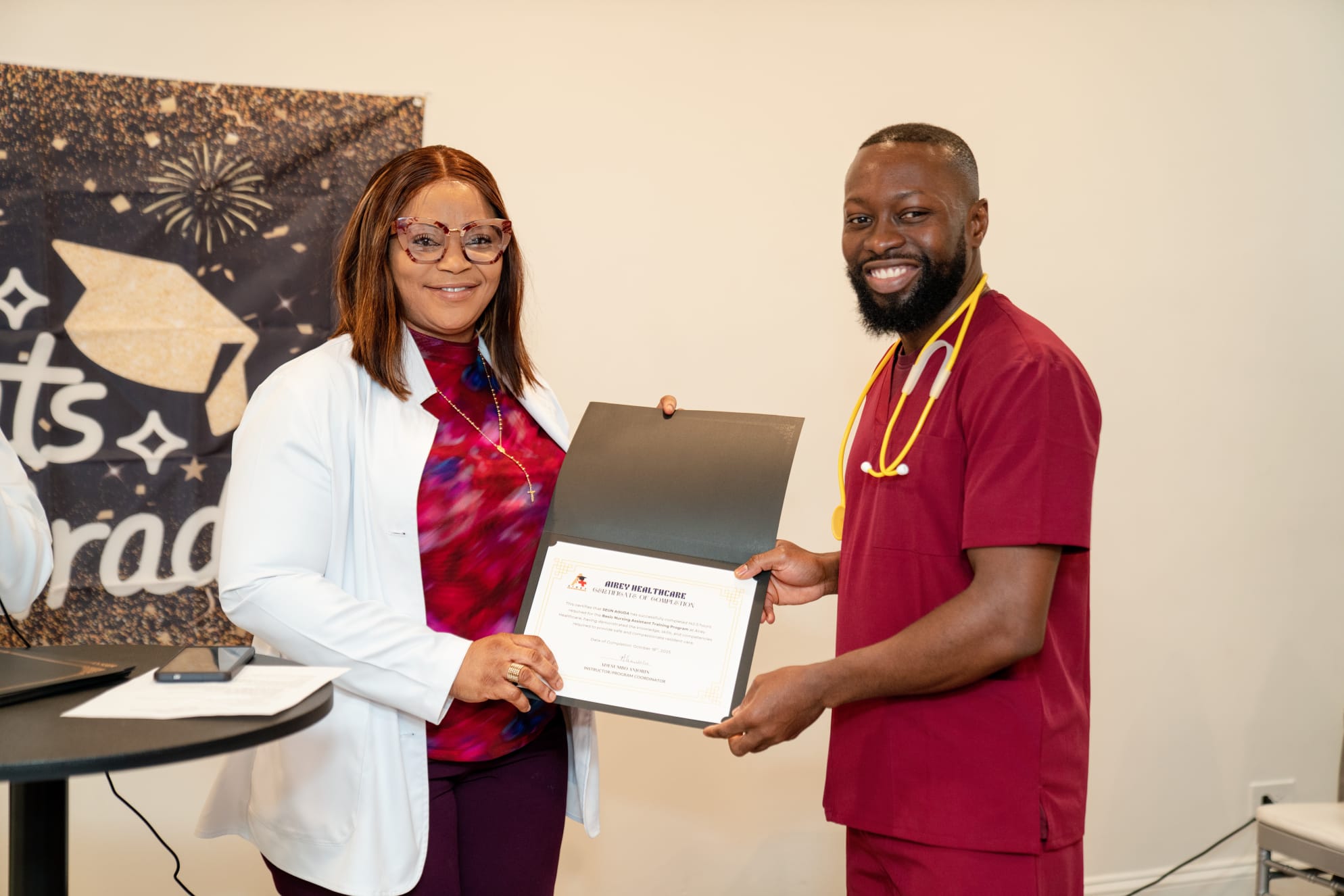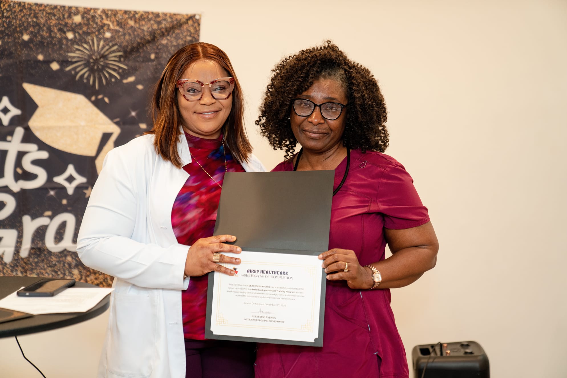 I am truly grateful for the exceptional training and support provided by AIREY Healthcare CNA School. The instructors are knowledgeable, patient, and genuinely committed to the success of every student. The program is well-structured, hands-on, and designed to prepare students not only to pass the CNA exam but to become compassionate, confident, and competent caregivers. AIREY Healthcare CNA School instills professionalism, discipline, and a strong sense of responsibility in its students. Graduates leave the program well-prepared to enter the healthcare field with confidence and a strong work ethic. I highly recommend AIREY Healthcare CNA School to anyone seeking quality education and a solid foundation in healthcare.” “AIREY Healthcare CNA School provides outstanding education, hands-on training, and supportive instructors who truly care about student success. Graduates leave confident, skilled, and ready to make a difference in healthcare. Highly recommended!”