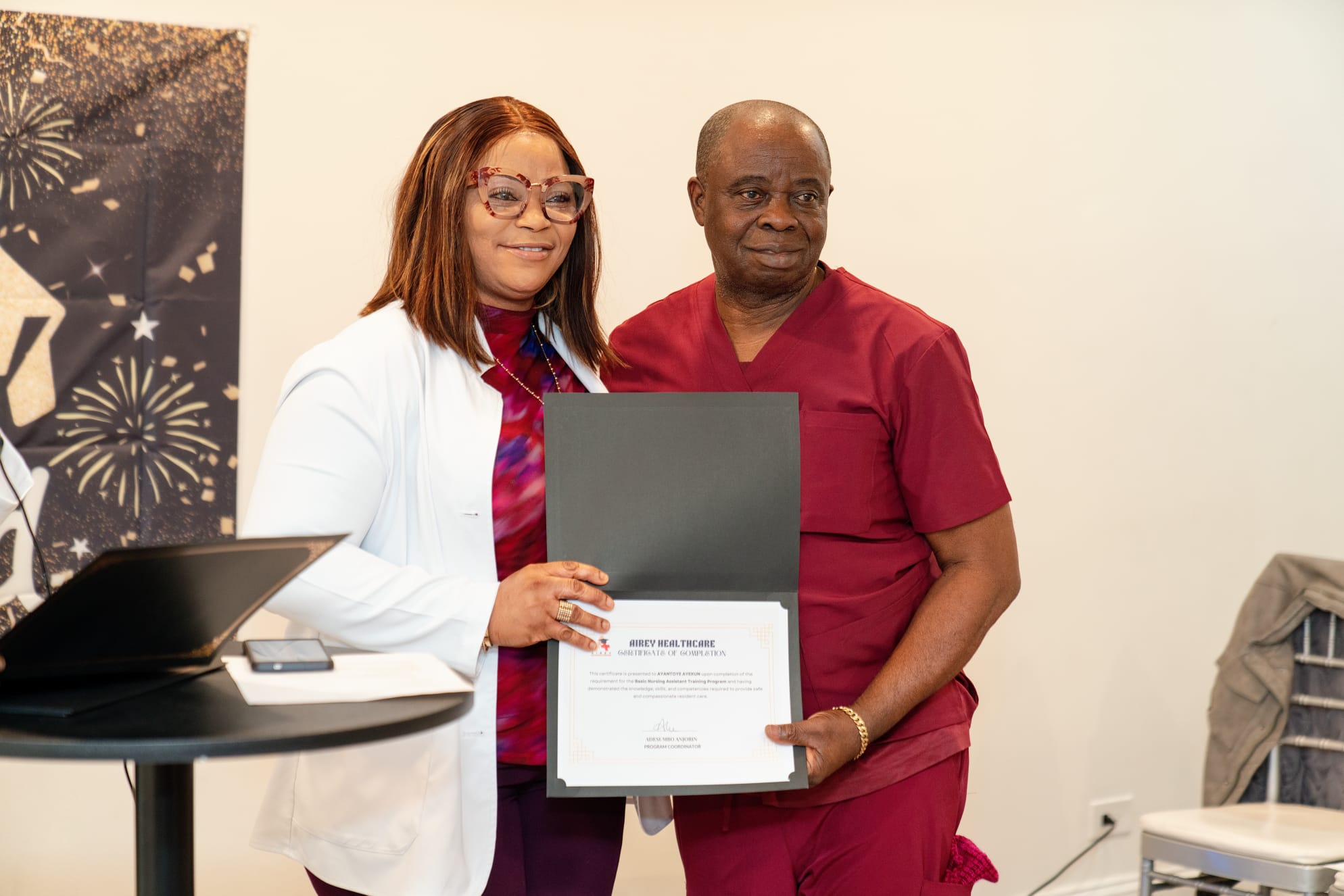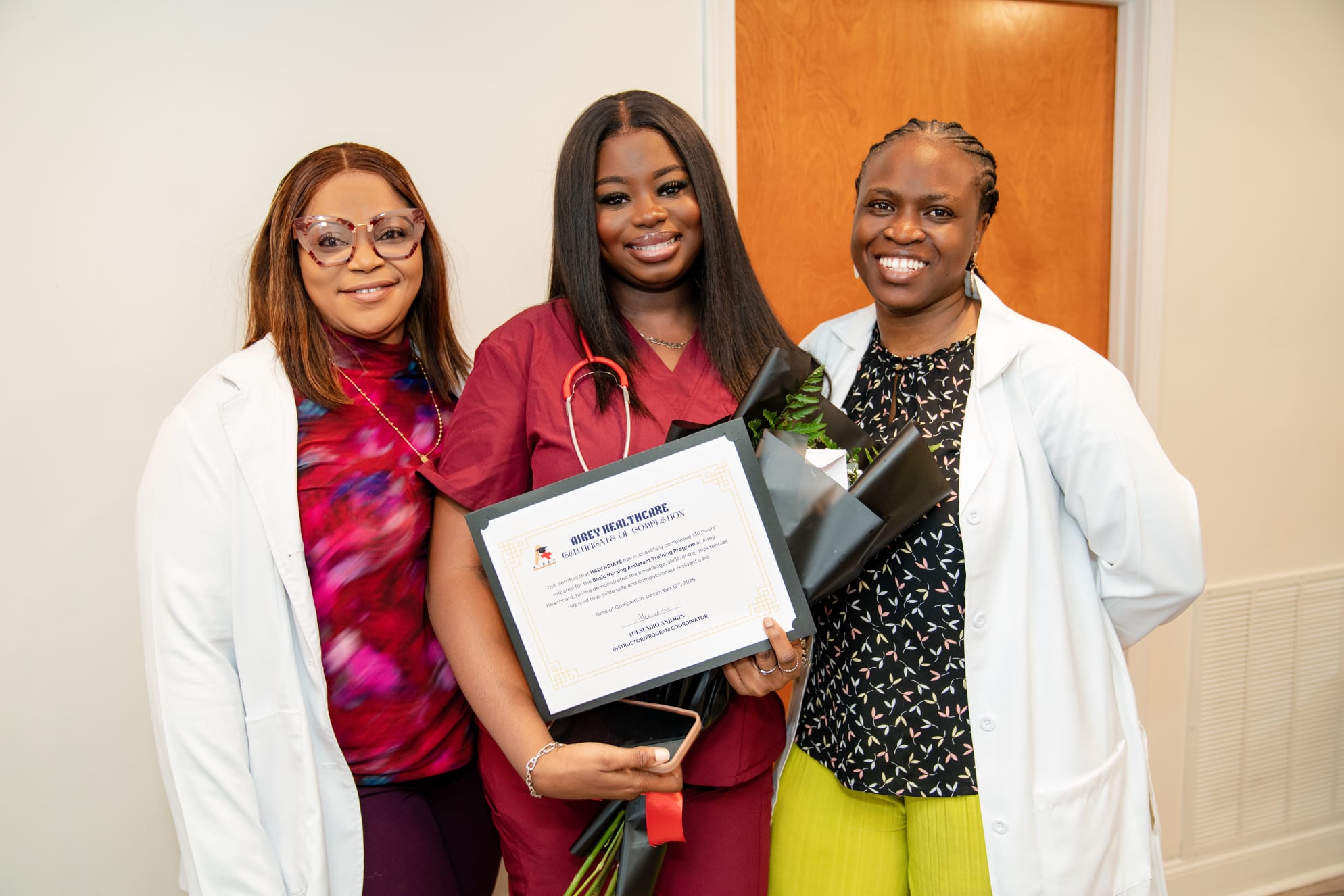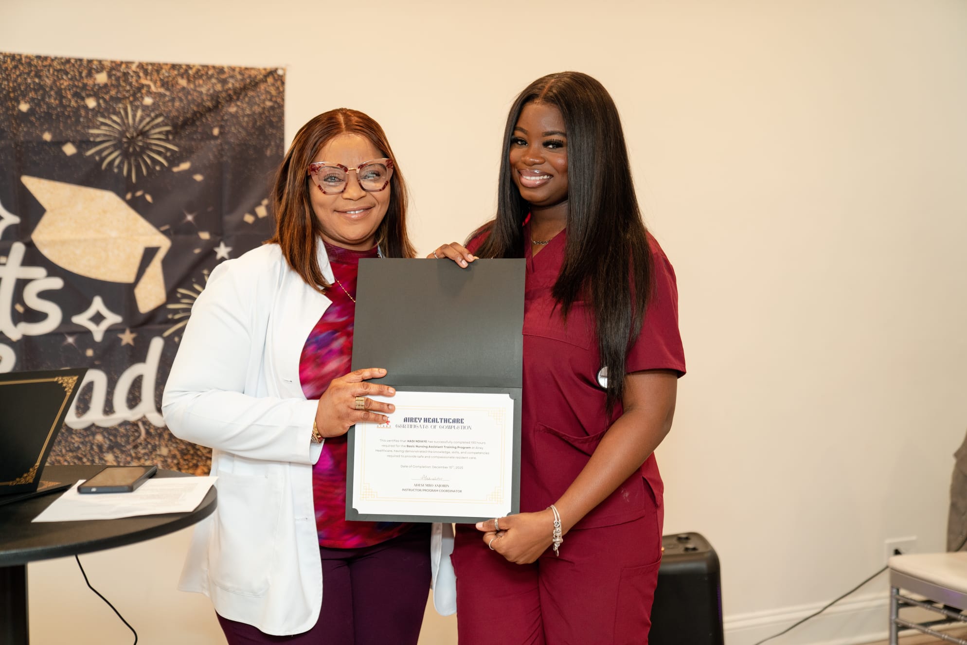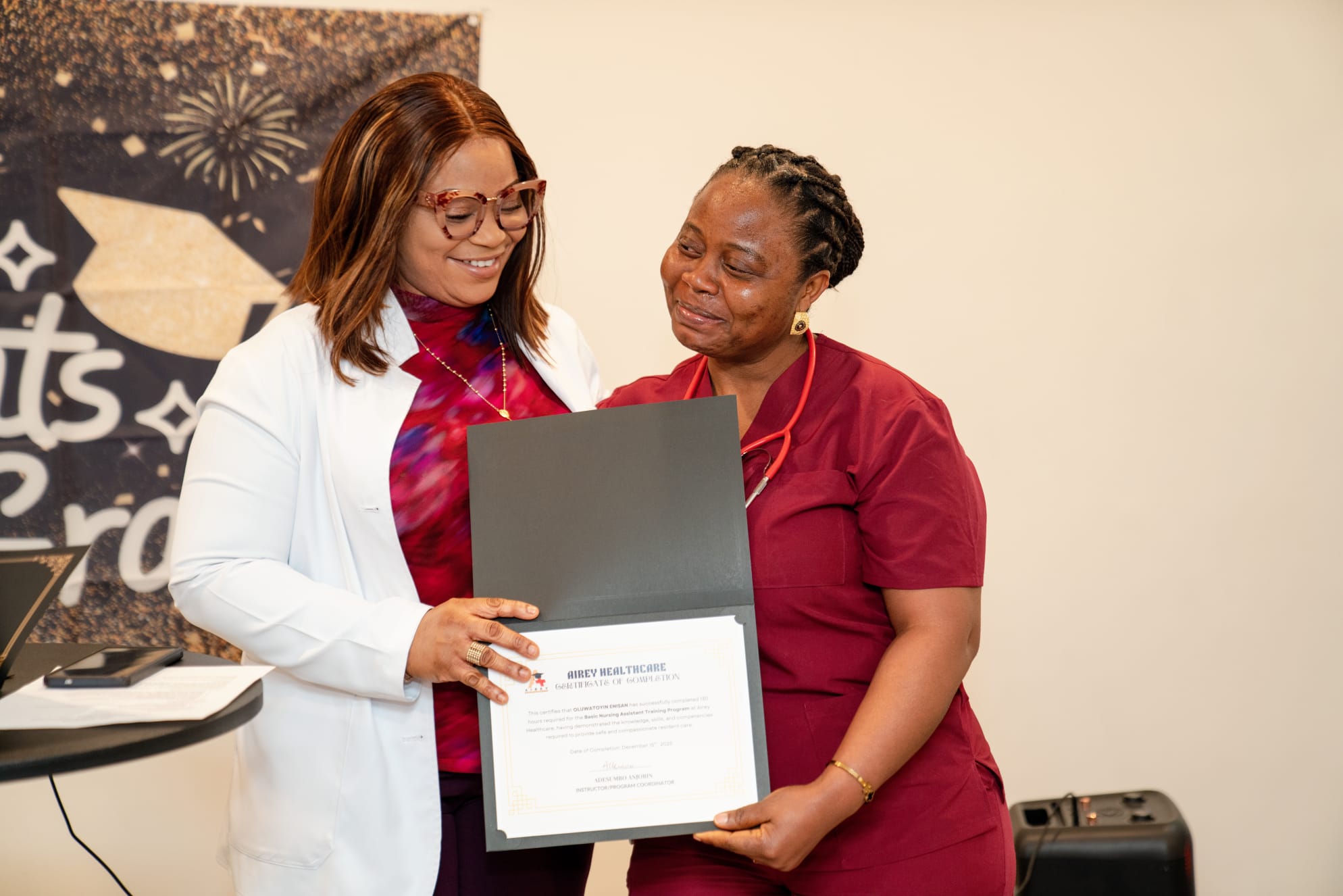 I am truly grateful for the exceptional training and support provided by AIREY Healthcare CNA School. The instructors are knowledgeable, patient, and genuinely committed to the success of every student. The program is well-structured, hands-on, and designed to prepare students not only to pass the CNA exam but to become compassionate, confident, and competent caregivers. AIREY Healthcare CNA School instills professionalism, discipline, and a strong sense of responsibility in its students. Graduates leave the program well-prepared to enter the healthcare field with confidence and a strong work ethic. I highly recommend AIREY Healthcare CNA School to anyone seeking quality education and a solid foundation in healthcare.” “AIREY Healthcare CNA School provides outstanding education, hands-on training, and supportive instructors who truly care about student success. Graduates leave confident, skilled, and ready to make a difference in healthcare. Highly recommended!”